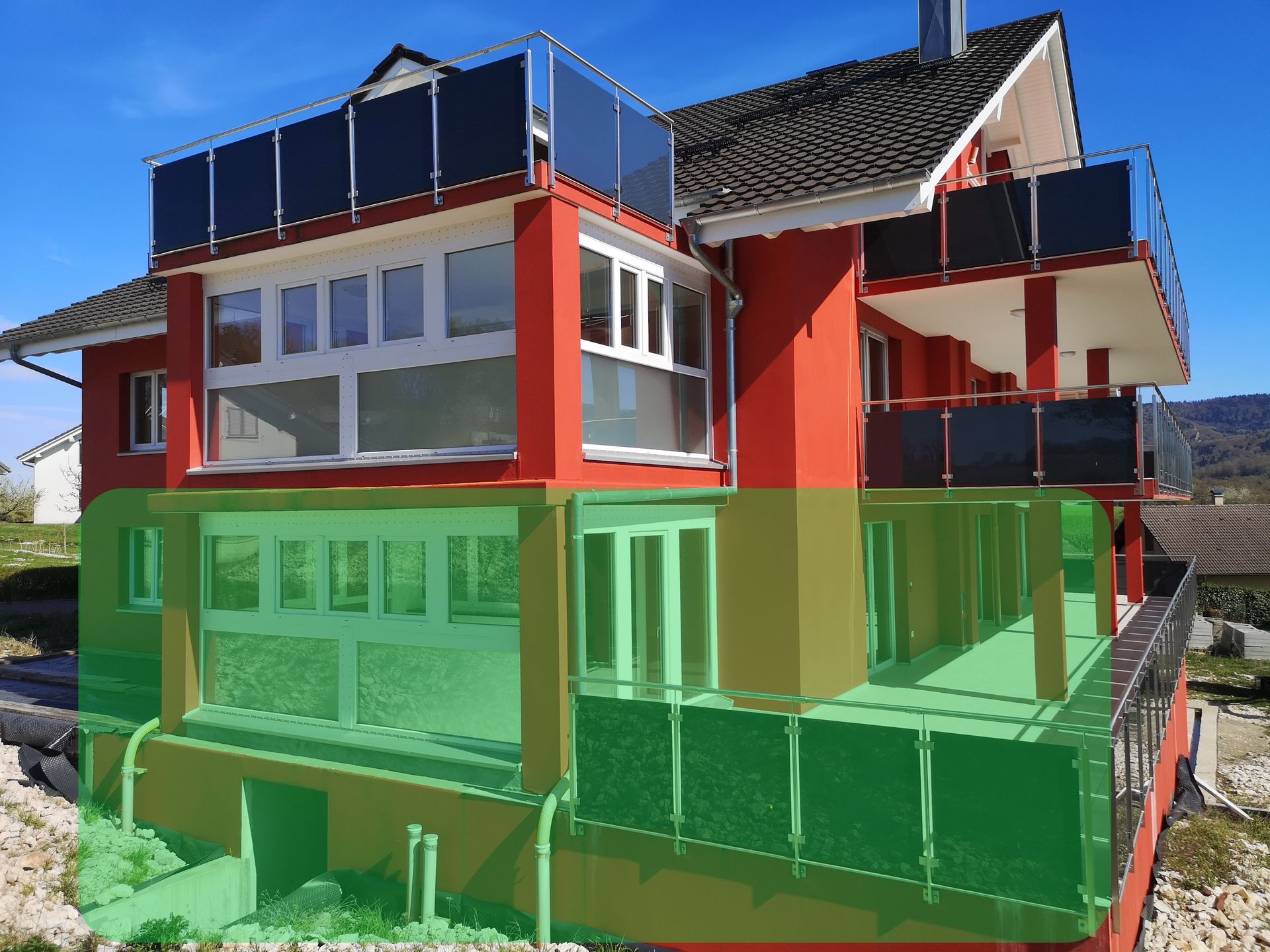 A louer à 2907 Rocourt, rue du Soleil 5, un appartement de 4.5 pces (110m2) au rez-de-chaussée, avec deux salles de bain, grand balcon couvert, jardin d’hiver, jardin de 200m2 en option, place dans la salle de bain pour machines à laver et à sécher privées. Immeuble moderne de 2025-2026. Libre dès 01.09.2026.