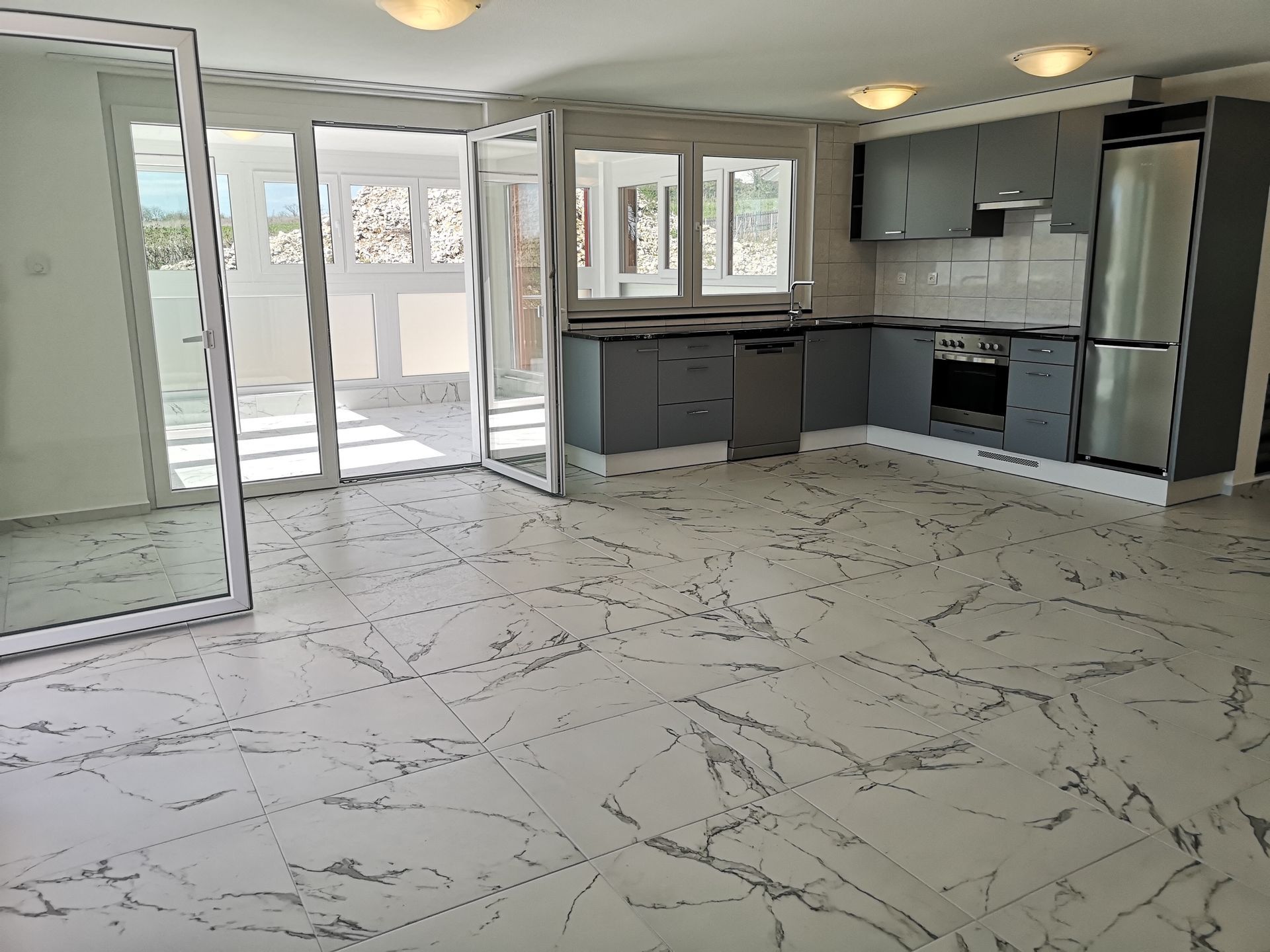 - cuisine ouverte sur le salon / salle à manger, avec accès au balcon