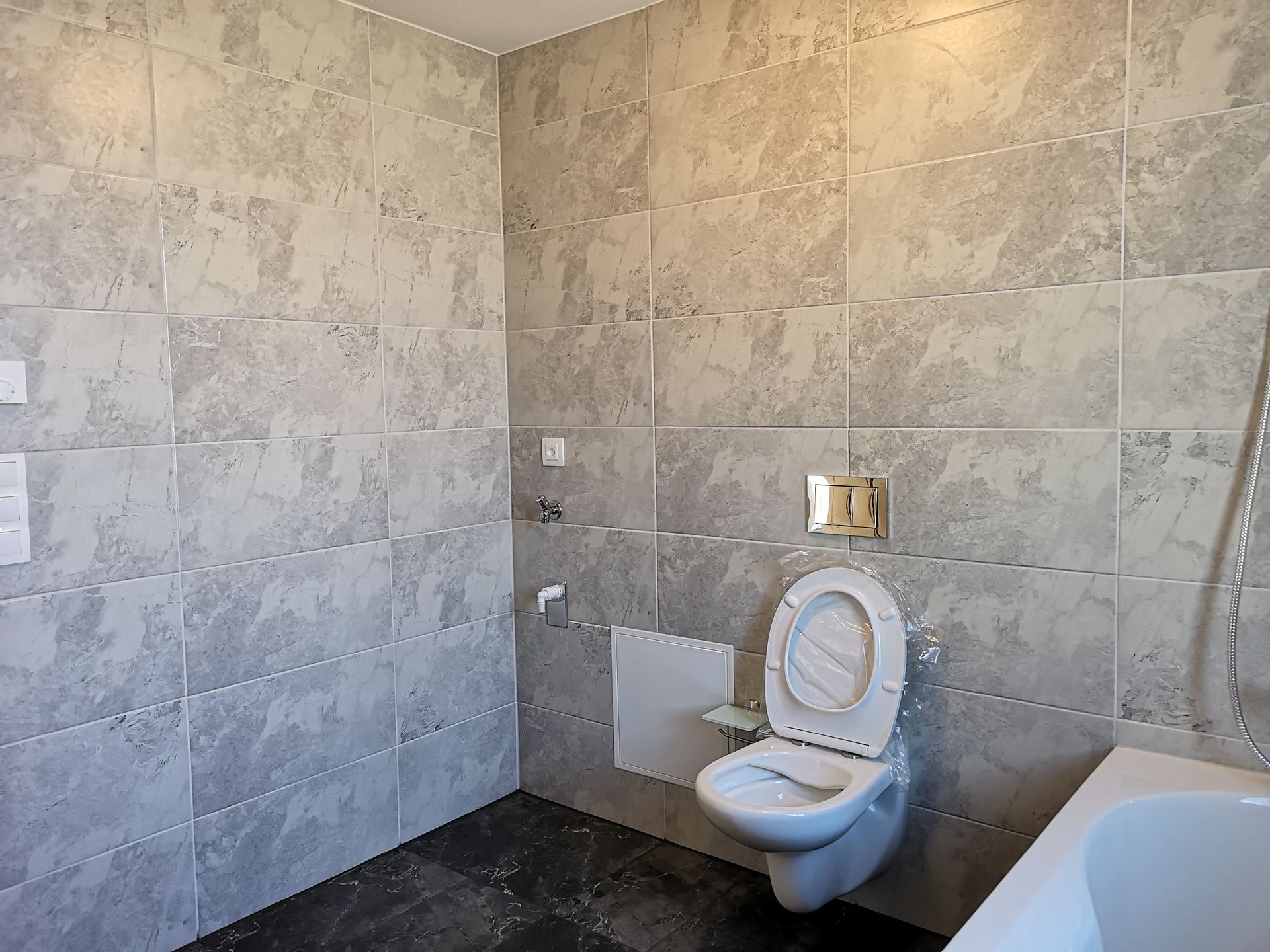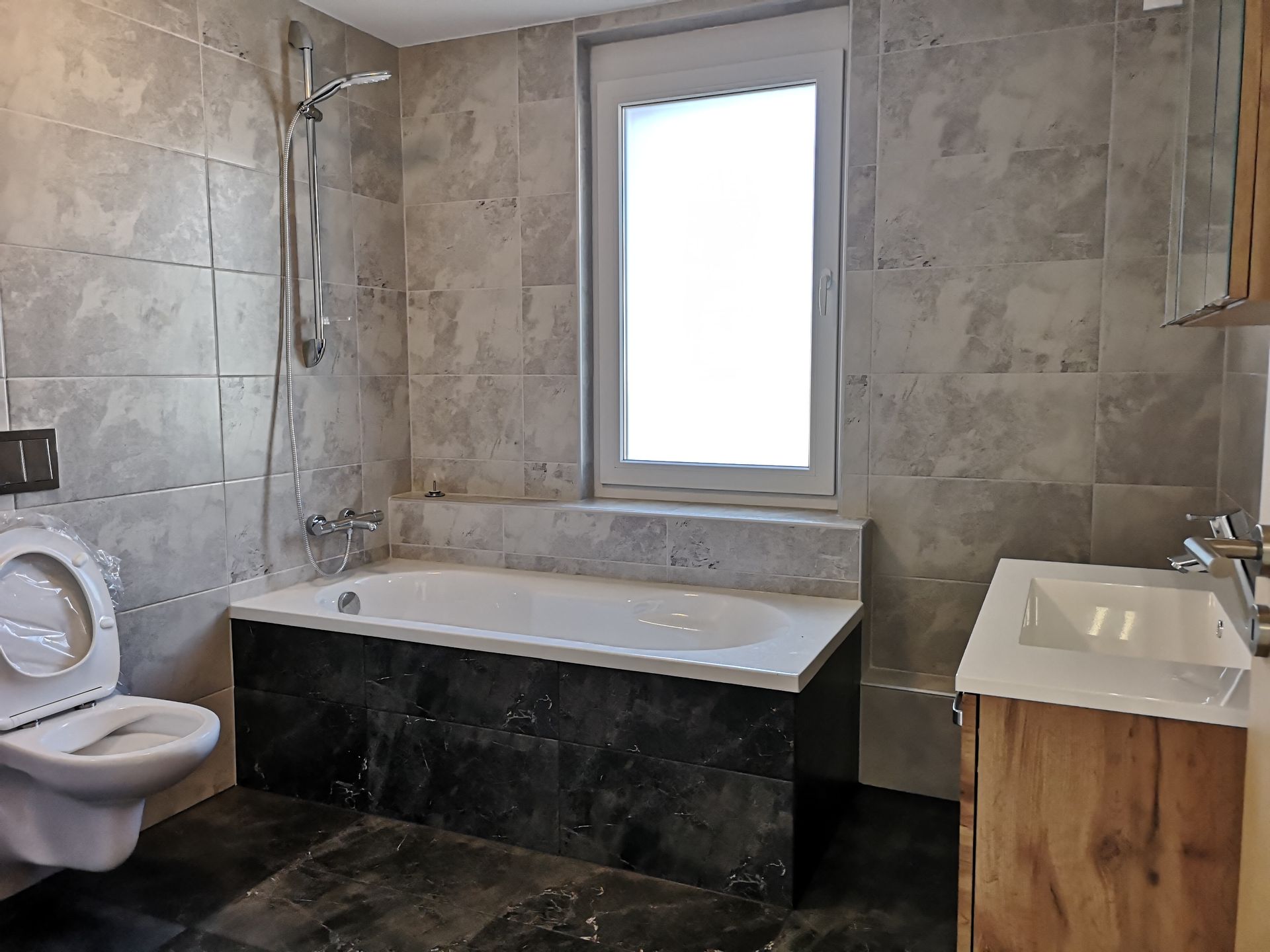 - salle de bain avec baignoire, place pour machines à laver et à sécher privées