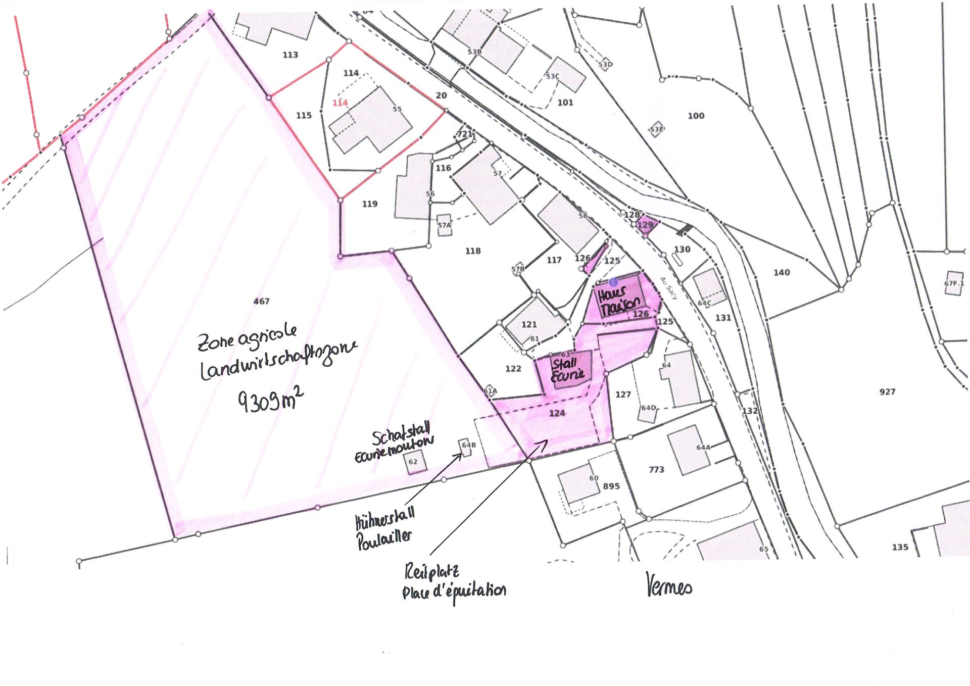 Parzellen : 1084 m2 Zentrumszone und 9309m2 Landwirtschaftszone